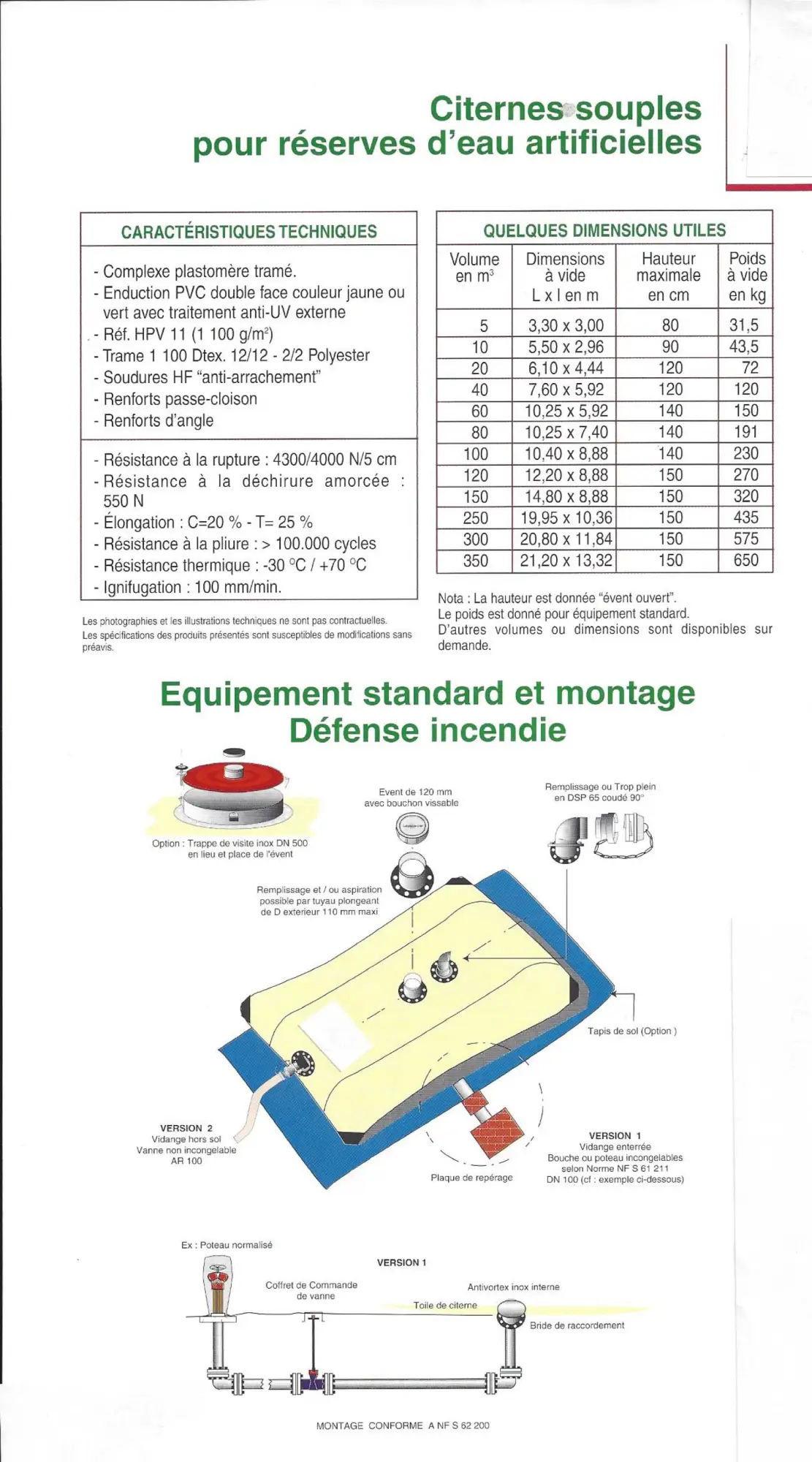 APPLICATION : stockage d’eau alimentaire, eau de pluie, engrais liquide, irrigation, protection d’incendie, industrie, transport (montagne, isolé).