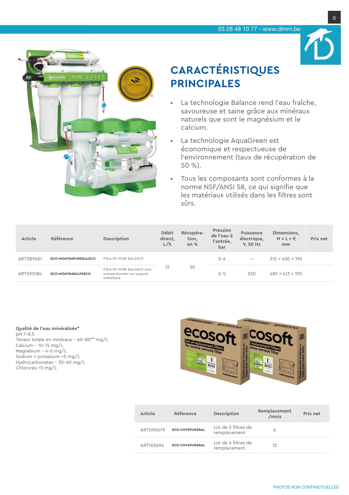 - Tous les composants sont conformes à la norme NSF/ANSI 58, ce qui signifie que les matériaux utilisés dans les filtres sont sûrs.